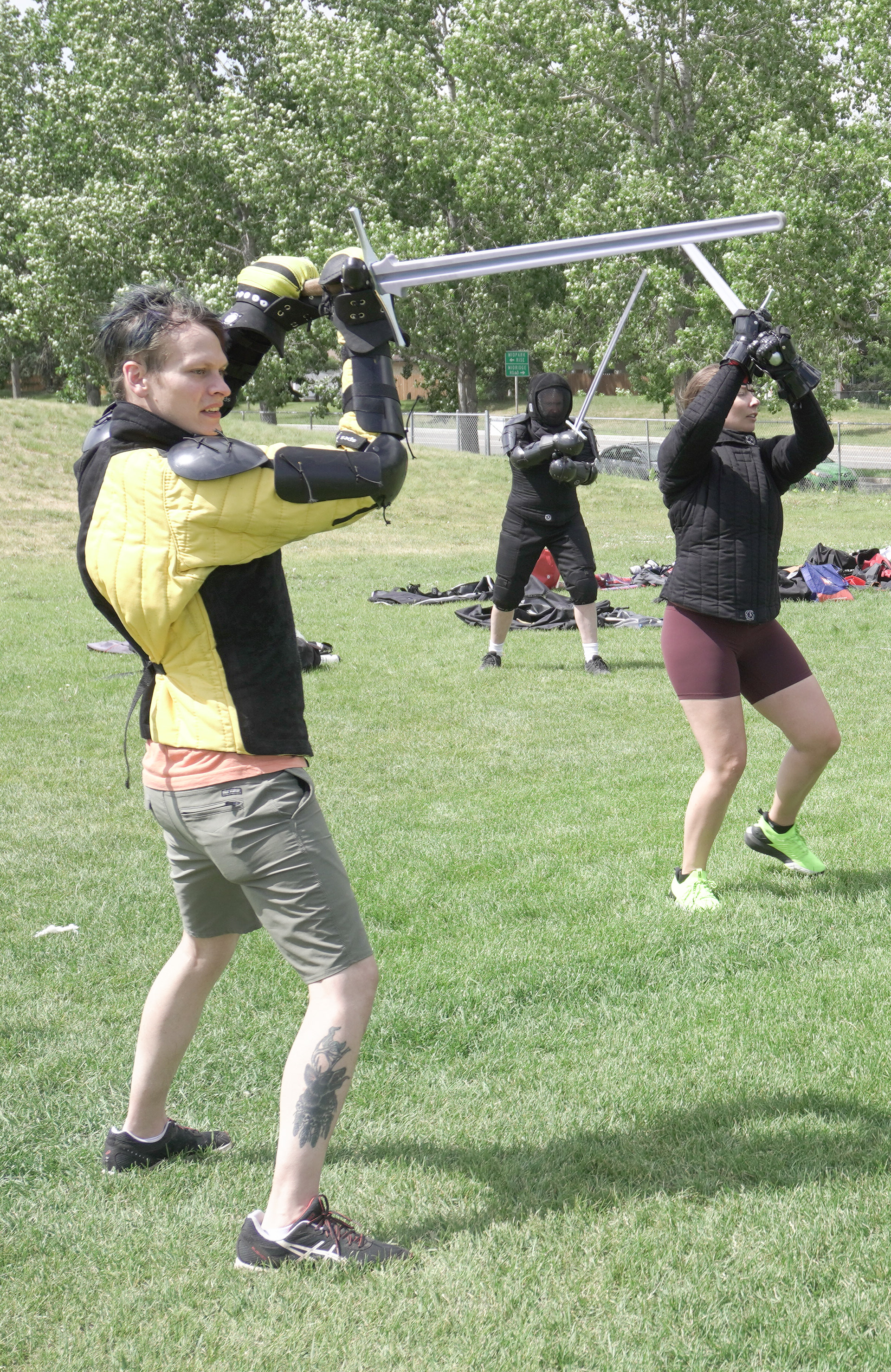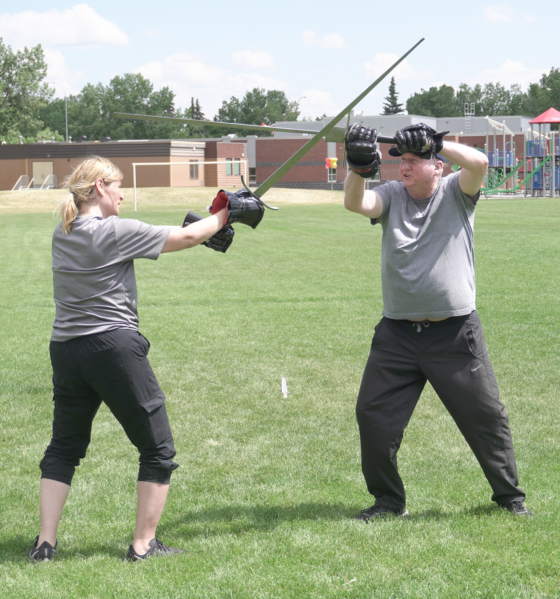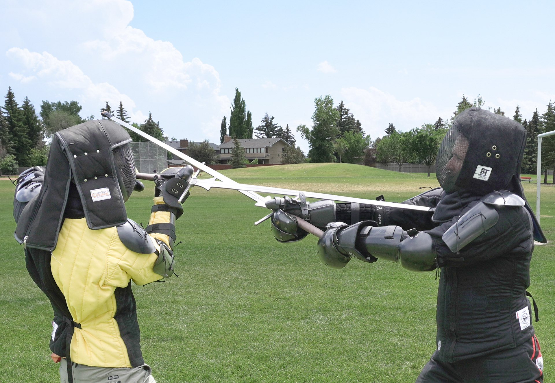 Jason Lacroix (yellow) and Matt Cardall (black) engage in a friendly duel.